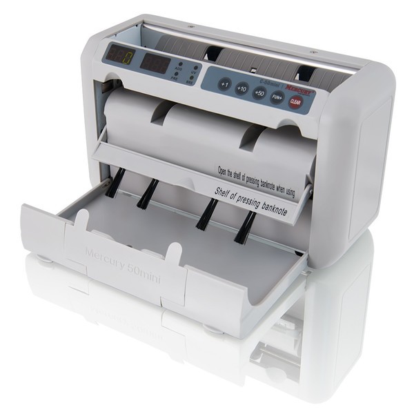 Отличным портативным прибором, способным быстро и эффективно пересчитывать банкноты разного номинала и валюты (рубли, доллары и евро) является Mercury C-50 mini с АКБ. Имея небольшие габаритные размеры, аппарат можно легко брать с собой, устанавливая на любую ровную поверхность - рабочий стол, тумбу, полочку и так далее. Благодаря встроенной аккумуляторной батарее он может работать даже без доступа к сети 220 В, что чрезвычайно удобно, особенно на выездах, когда проверить деньги нужно не в офисе, а, предположим, в автомобиле.